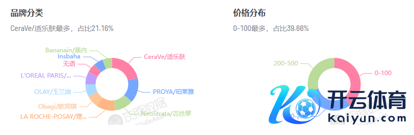 从带货物牌来看,骆王宇直播间上架最多的品牌为适乐肤,占比达21.16%,其次是珀莱雅;居品价钱主要漫步在0-100元价位区间,自满出其带货物牌较为平价。