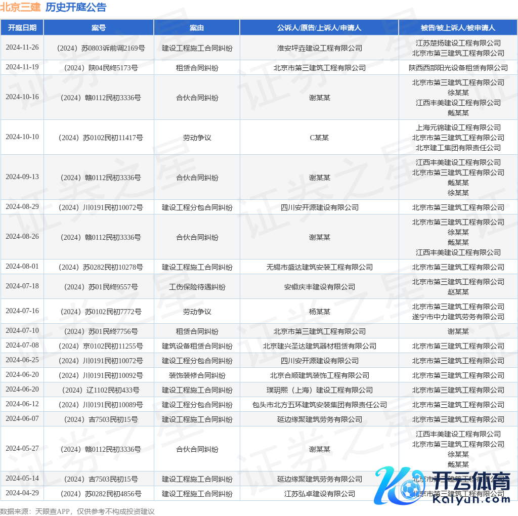 本站音讯开云体育(中国)官方网站,凭据天眼查APP清楚,近日公布了一则北京市第三建筑工程有限公司算作被告/被上诉东说念主的开庭公告,详备施行如下: 案号:(2024)苏0803诉前调2169号审理法院:淮安市淮安区东说念主民法院案由:建树工程施工条约纠纷当事东说念主信息: 原告/上诉东说念主:淮安坪垚建树工程有限公司 被告/被上诉东说念主:江苏楚扬建树工程有限公司、北京市第三建筑工程有限公司开庭日历:2024年11月26日凭据统计,近一年内以北京市第三建筑工程有限公司为当事东说念主的历史开庭公告有32则,其中案由为“建树工程施工条约纠纷”的公告以9则居首,其次为“干事争议”有4则,“结伙条约纠纷”有4则。历史开庭公告(前20条)如下: