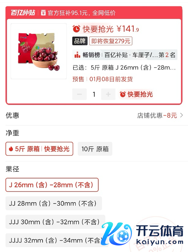 ▲在拼多多的逾额补贴下,5斤原箱发货的车厘子补贴售价低至141.9元