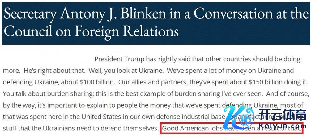 好意思国《政事报》网站报谈截图 在此基调下,白宫前年11月挑升向国会议员泄气了一份“军援乌克兰受益州”散布图,初次督察列出对乌军援资金怎样蜕变为对好意思国数十个州的军工业投资。 前年12月,好意思国务卿布林肯在与时任英海应付大臣卡梅伦召开的纠合记者会上进一步解释称,好意思国援乌资金其实有90%用于在原土坐褥供应乌克兰的火器装备,这将为好意思国创造更多办事契机,让好意思国经济受益。