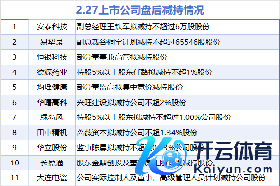 据统计开yun体育网,2月27日,暂无A股上市公司露馅增抓情况。包括安泰科技、易华录、恒银科技、德源药业、均瑶健康、华曙高科、绿岛风、田中精机、华立股份、长盈通、大连电瓷在内的11家A股上市公司露馅减抓情况。