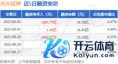 本站音问,9月2日,光大证券(601788)融资买入2.53亿元,融资偿还2.38亿元,融资净买入1445.79万元,融资余额34.59亿元,近3个往还日已都集净买入累计1.51亿元,近20个往还日中有12个往还日出现融资净买入。